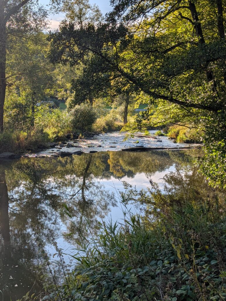 Es ging ein Stück den Schleidbach entlang und dann zur Steinbachtalsperre. Zurück dann am Waldrand entlang bis zum Friedwald von Bad Münstereifel. Von dort aus am Steinbach entlang zurück nach Bad Münstereifel.