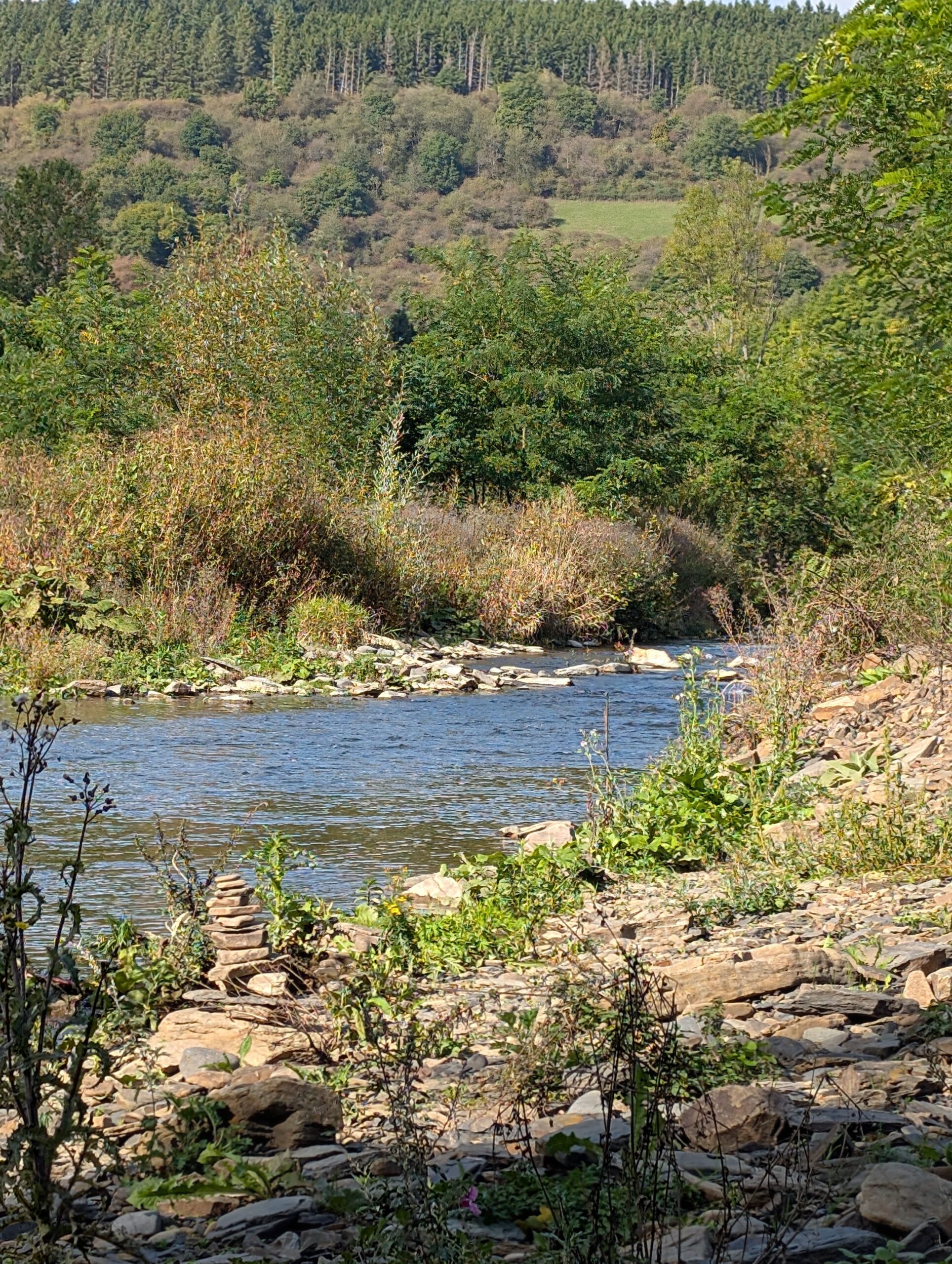 Es ging ein Stück den Schleidbach entlang und dann zur Steinbachtalsperre. Zurück dann am Waldrand entlang bis zum Friedwald von Bad Münstereifel. Von dort aus am Steinbach entlang zurück nach Bad Münstereifel.