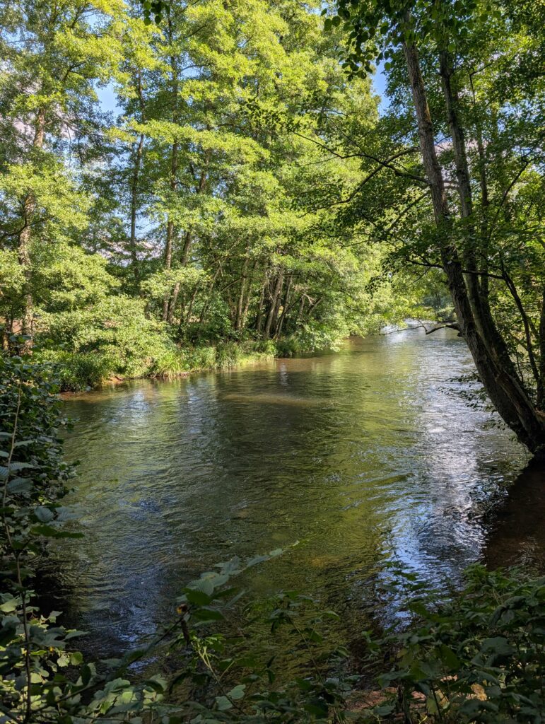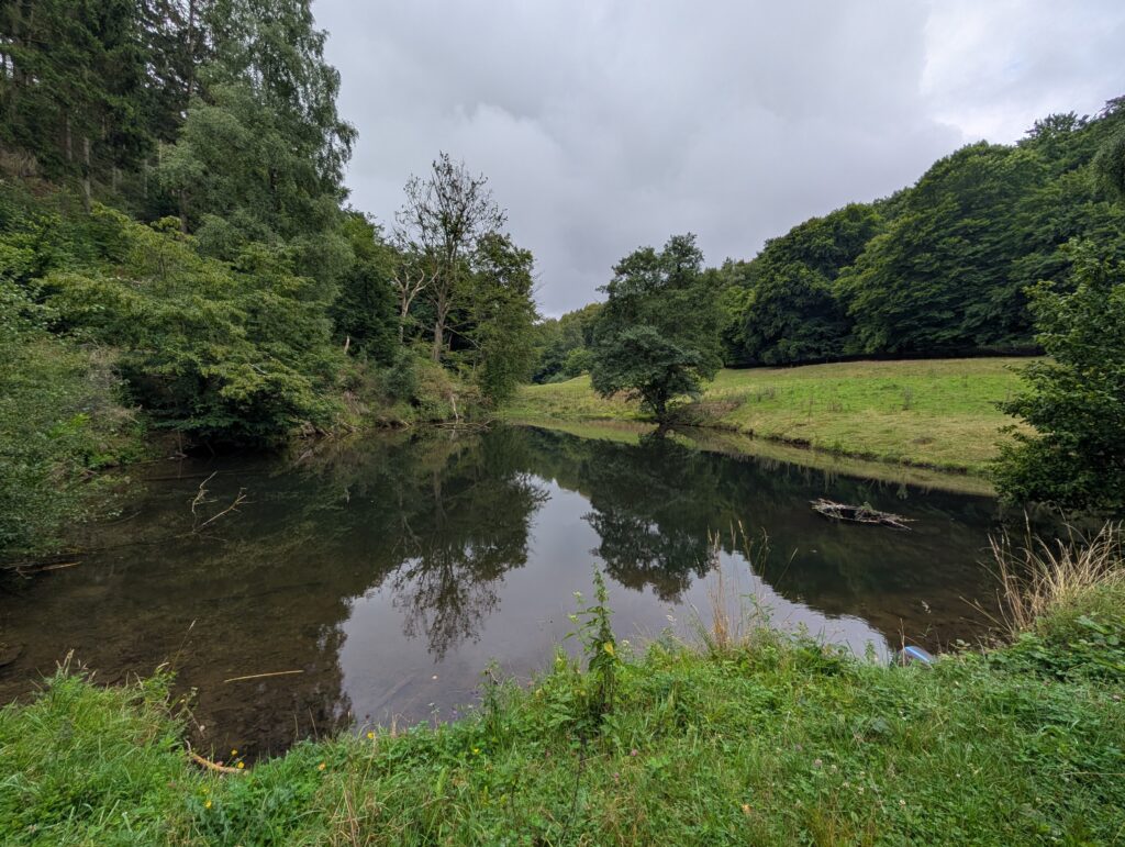 In kleinen Ort Abenden haben wir Pause gemacht und einen Kaffee getrunken, direkt an der Rur.